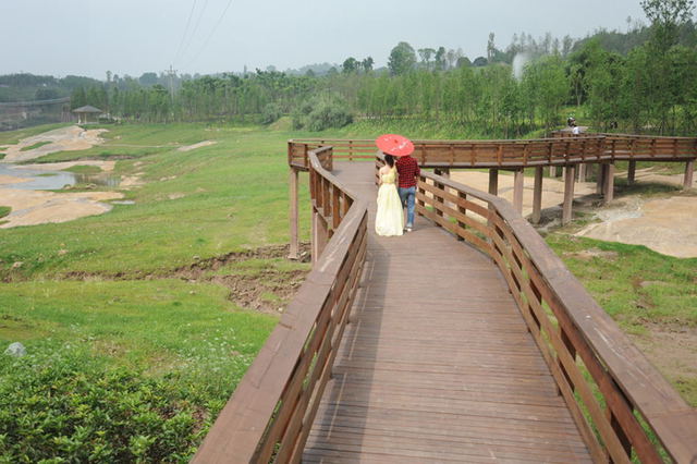 情人廊是一座高架木桥,隐与幽静的湖湾之中。来情人廊的朋友,一定要牵着有情人的手从桥头走到桥走99步才算完美,99寓意着久久长情,久久长寿之意。
