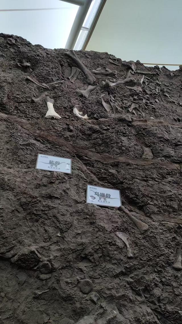 这里就是朐忍渝州龙等标本产出地,现在我们还可以在化石墙上看到朐忍渝州龙化石,它是云阳发现的阔鼻龙类的新属种恐龙,它的骨骼化石保存非常完整,几乎涵盖了身体的各个部位。朐忍渝州龙是一种植食性恐龙,它体长约11米,四足行走,与蜥脚类恐龙家族中其他身材高大的“亲戚”相比,渝州龙显得较为矮胖。朐忍渝州龙是重庆发现最早的新蜥脚类恐龙,为研究新蜥脚类的起源、演化及分布提供了依据。
